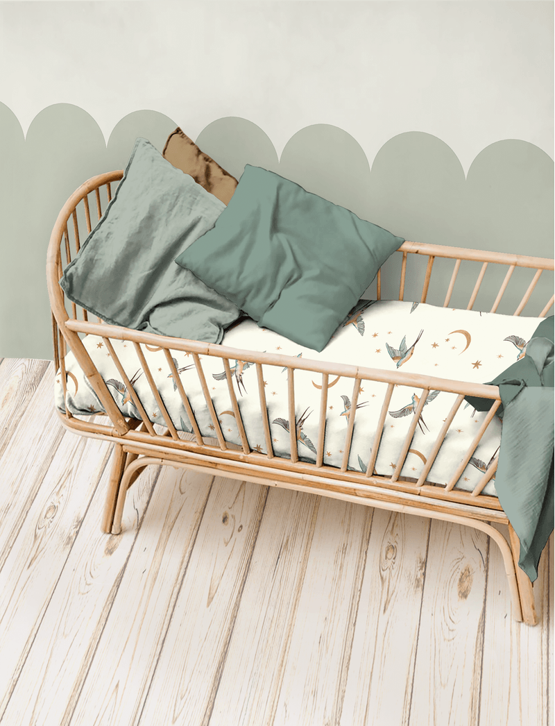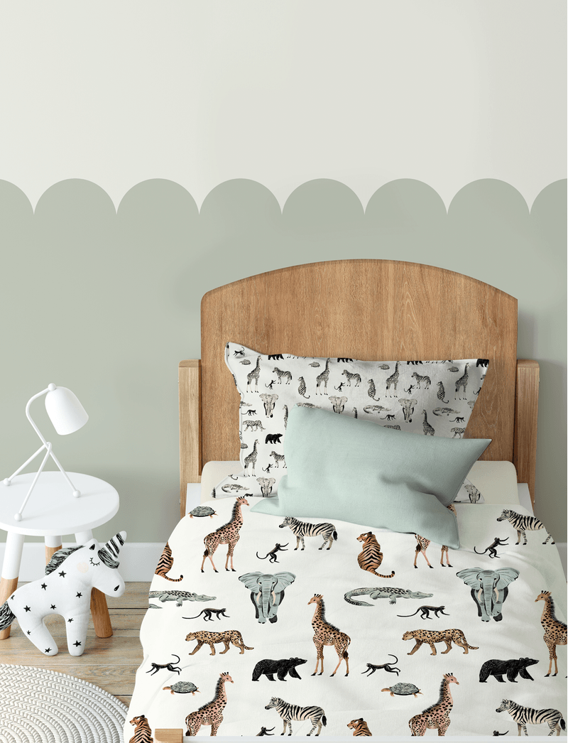 Papel de parede adesivo The Mini Forest, sem relevo e sem textura, com altura de meia parede e acabamento escalope