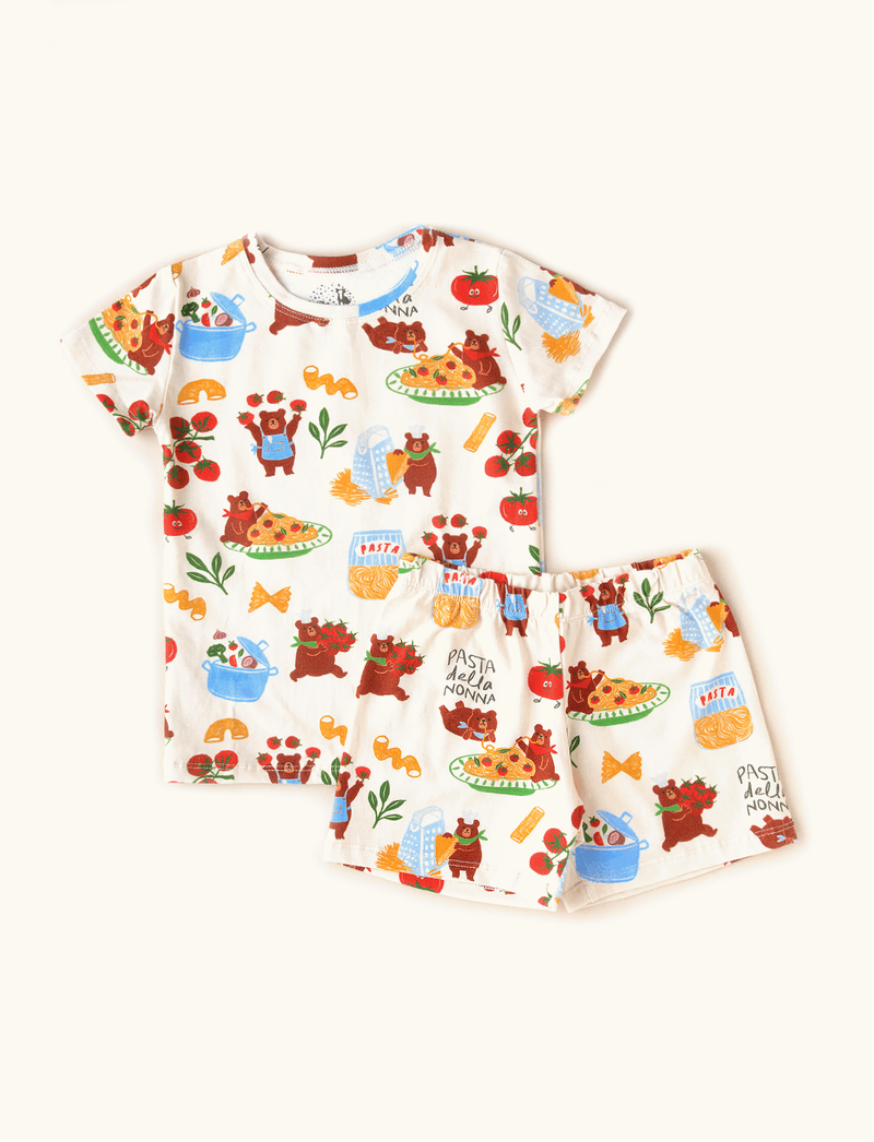 Pijama Infantil Unissex The Mini Forest pensado especialmente para o verão. É composto por shortinho e blusa de mangas curtinhas, confeccionado em malha de algodão e elastano, que é macio e maleável, o que torna a hora do sono muito mais confortável.