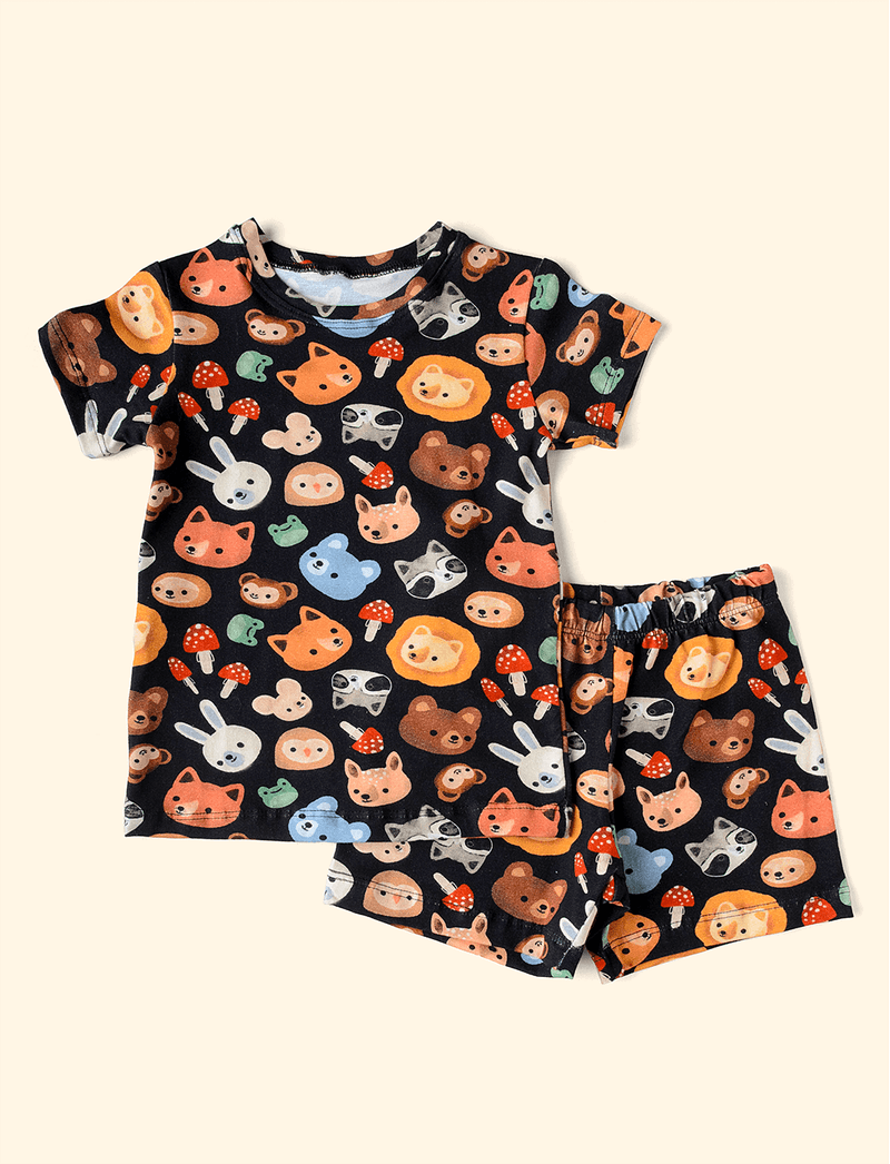 Pijama Infantil Unissex The Mini Forest, composto por shortinho e camiseta de mangas curtinhas, confeccionado em malha de algodão e elastano, que é bem macio e maleável, o que torna a hora do sono muito mais confortável. Esse pijaminha é perfeito para os dias de meia estação e o elástico na cintura do short garante que vai ficar certinho no corpo das crianças.