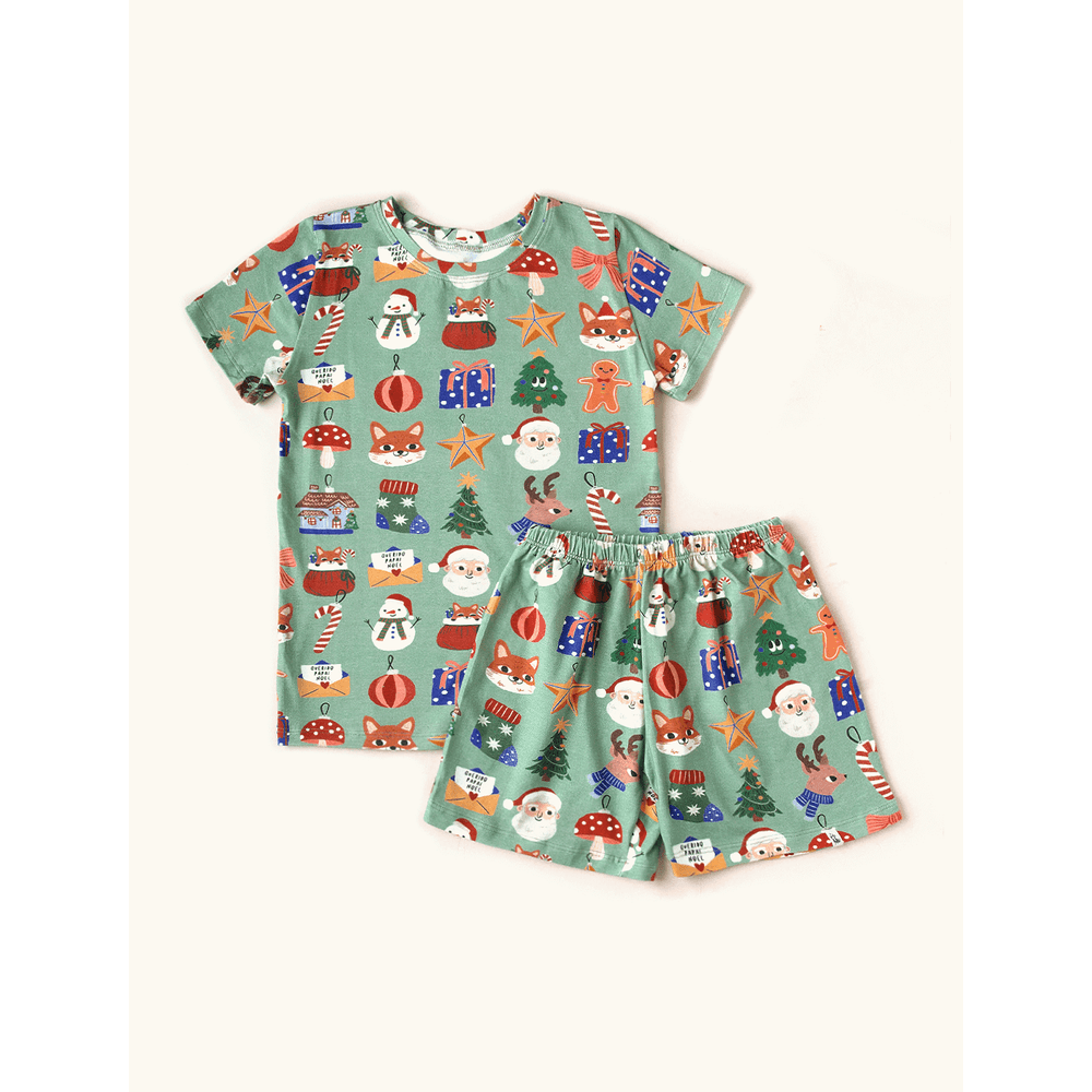 Pijama Infantil Unissex The Mini Forest pensado especialmente para o natal em família. É composto por shortinho e blusa de mangas curtinhas, confeccionado em malha de algodão e elastano, que é macio e maleável, o que torna a hora do sono muito mais confortável.