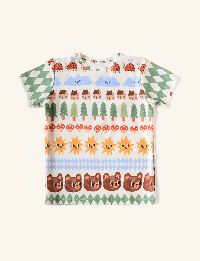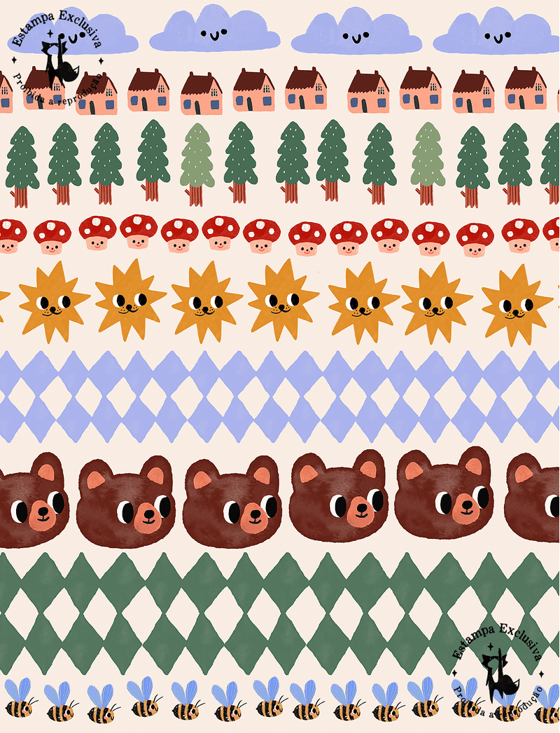 A estampa traz vários bichinhos que vivem na Floresta da The mini Forest, formando listras super divertidas.
