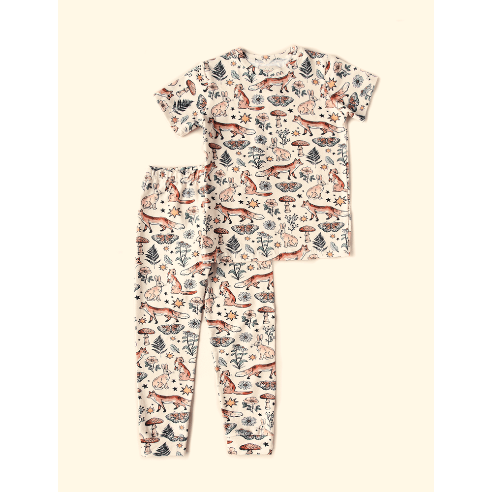 Pijama Infantil Unissex The Mini Forest, composto por calça e blusa de mangas curtinhas, confeccionado em malha de algodão e elastano, que é macio e maleável, o que torna a hora do sono muito mais confortável. Esse pijaminha é perfeito para os dias de meia estação e o elástico na cintura da calça garante que vai ficar certinho no corpo das crianças.