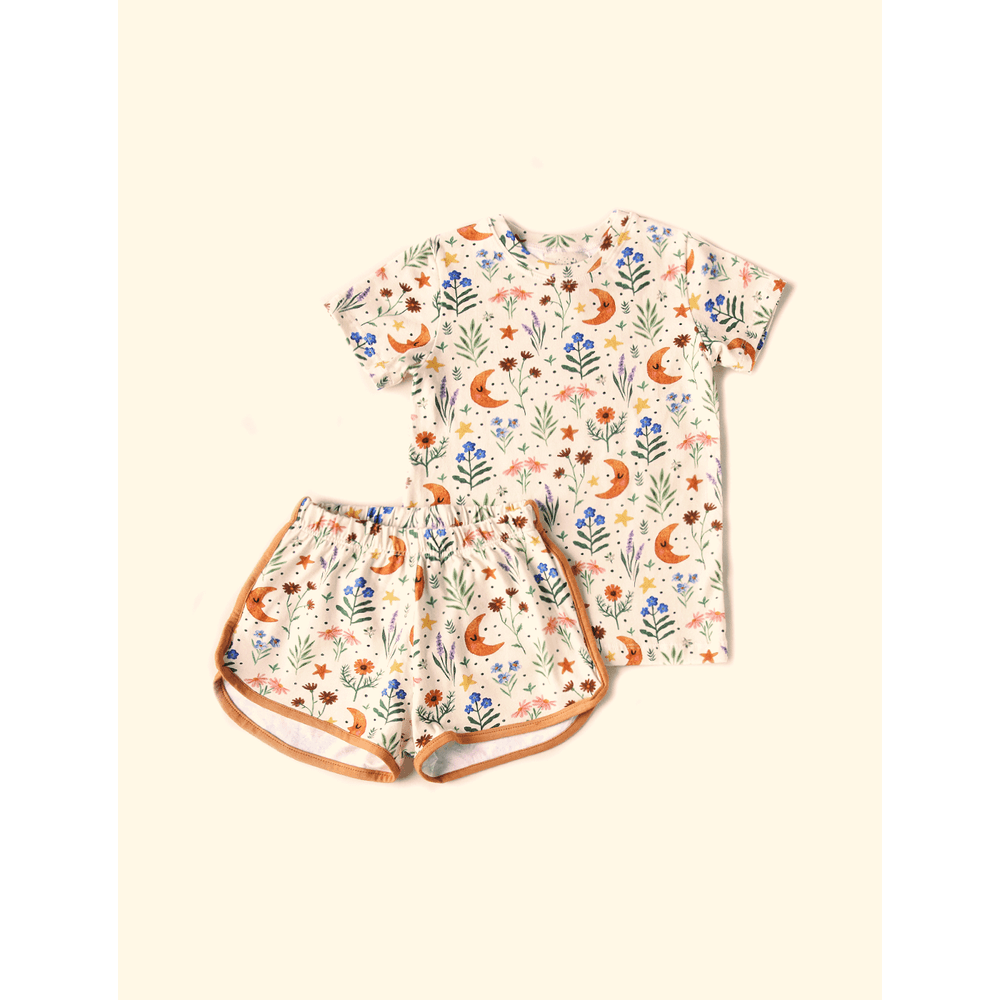 Pijama infantil Unissex The Mini Forest, composto por shortinho e camiseta de mangas curtas, confeccionado em malha de algodão com elastano, o que deixa a peça macia e com elasticidade para proporcionar o conforto necessário para as horas de dono das criança. Esse pijama tem modelagem soltinha e elástico na cintura do short para ficar certinho no corpinho dos meninos e meninas.