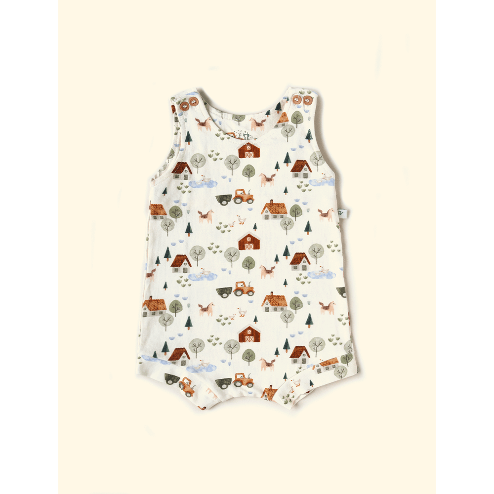Trazendo a fazendinha mais fofa da floresta, essa estampa da The Mini Forest traz as casinhas da fazendo e vários tratores fazendo o serviço pelos bosques.