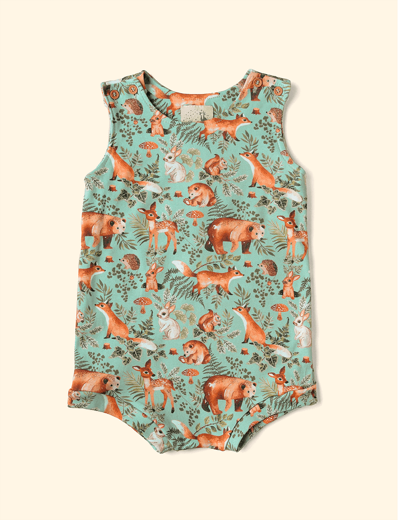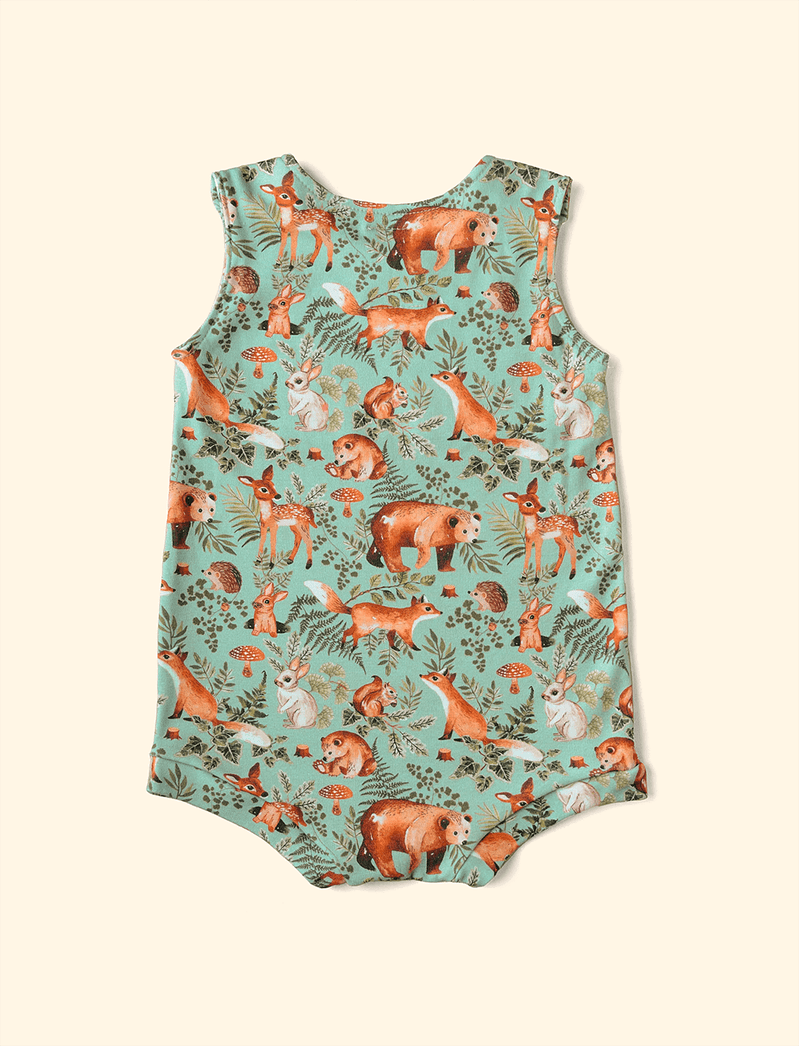 Romper de bebê Unissex The Mini Forest confeccionado em malha de algodão com elastano, que é leve, macia e tem o toque delicado. Tem a modelagem bem larguinha e alças grossas, com trava em botão de encaixe.