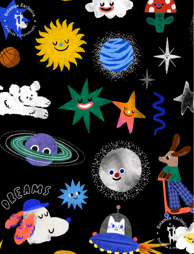 Mergulhando na mente criativa das crianças, a The Mini Forest traz a estampa inspirada no imaginário infantil.