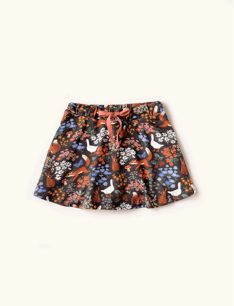 Short saia infantil The Mini Forest de modelagem evasê e comprimento curtinho. Essa pecinha é feita em malha de algodão com elastano, que é fresca e não limita o movimento das crianças, perfeito para os momentos de brincadeiras. O elástico na cintura é ideal para melhor ajuste ao corpinho das crianças e cordão decorativo para lacinho.
