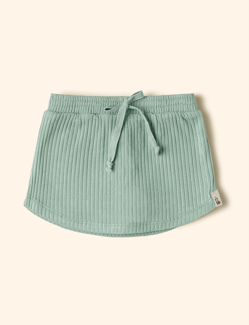 Short-saia The Mini Forest curtinho feito em malha canelada de viscose com elastano, que é levinha, macia e maleável