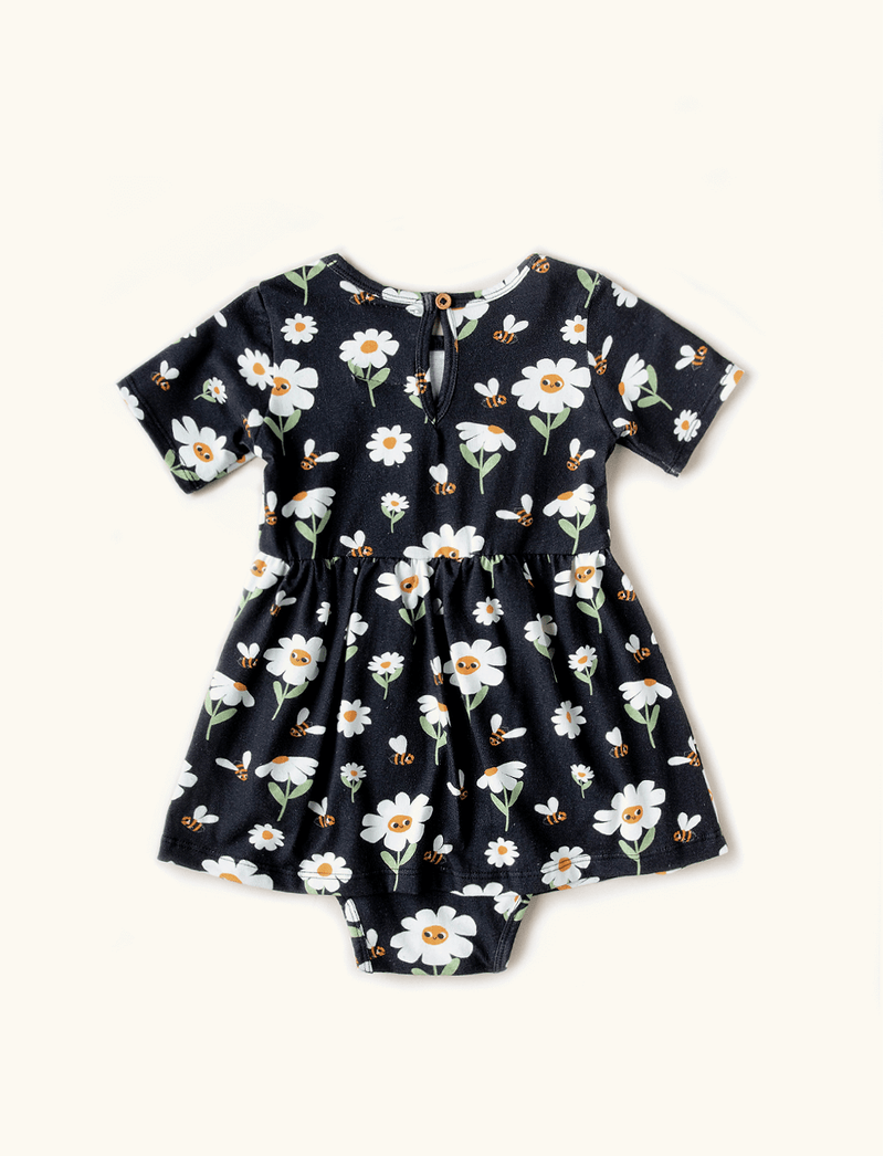 Além das margaridinhas na estampa, a The Mini Forest traz várias abelhinhas passeando pelo jardim.
