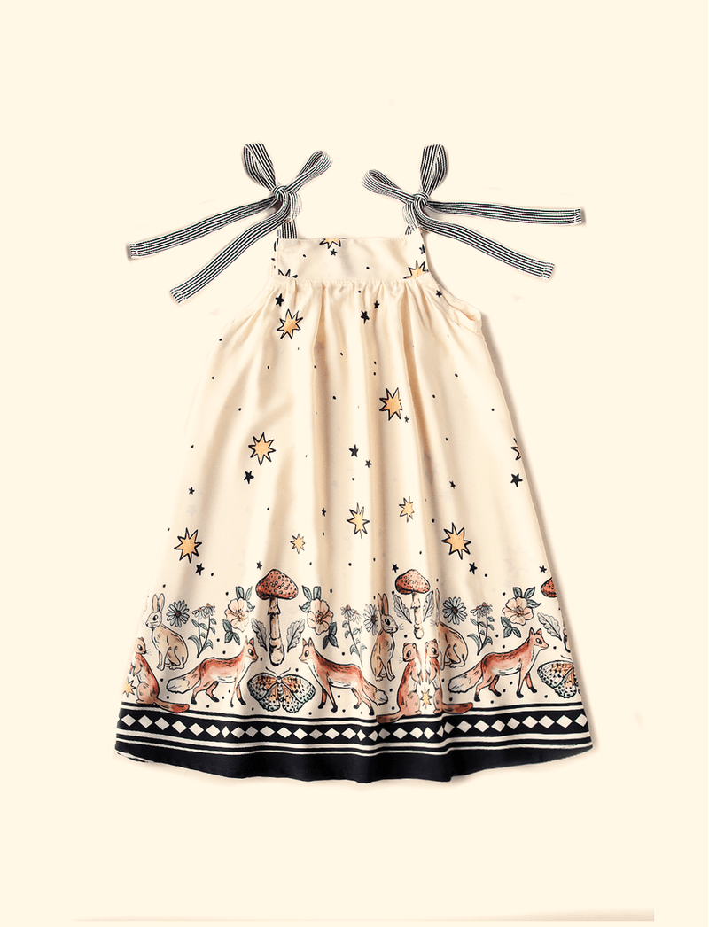Vestido Infantil Alça Barrado De Noite no Bosque Baunilha