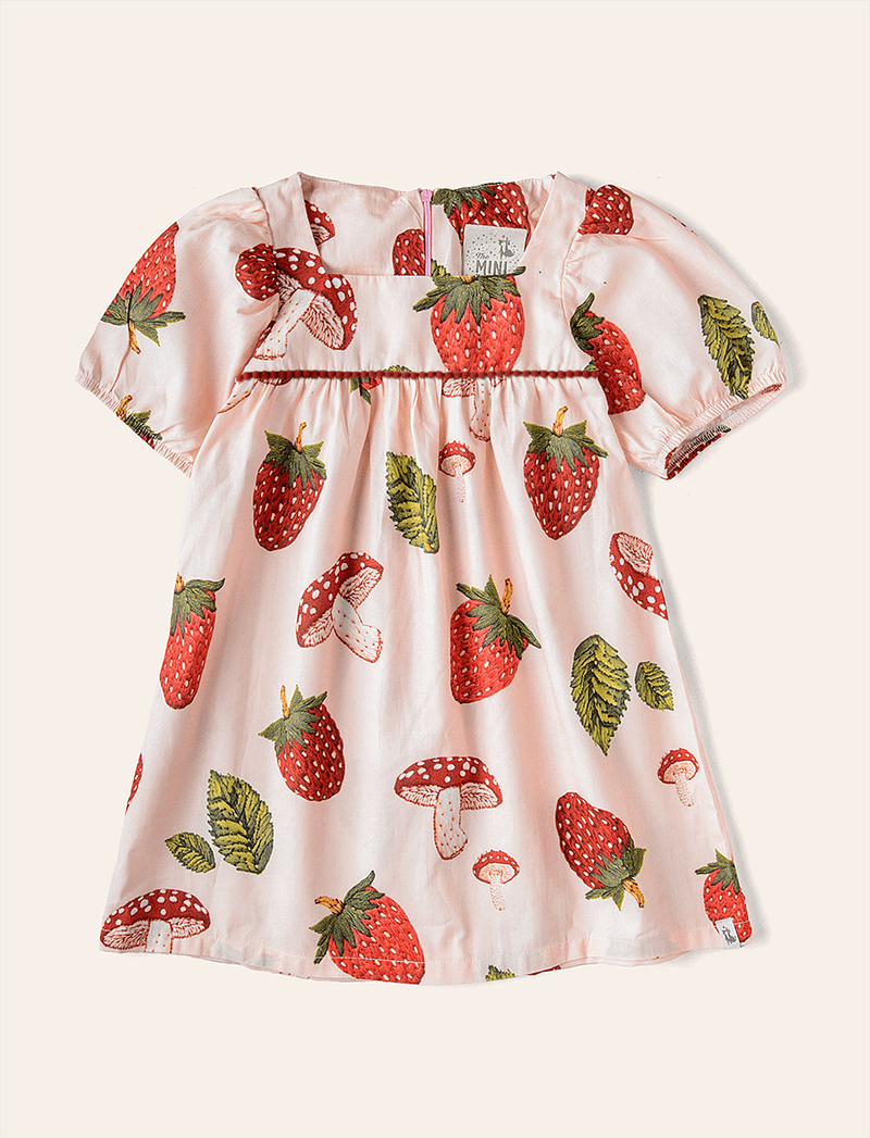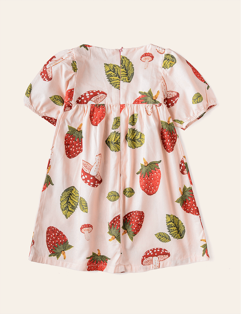 Vestido Infantil Manga Bufante Fresa Rosadinho