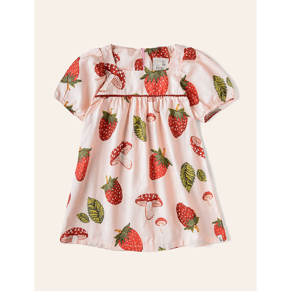 Vestido infantil The Mini Forest com as manguinhas curtas e decote quadrado. É confeccionado em tecido plano de algodão, que garante que a pele dos pequenos transpire livremente, não atrapalhando nas brincadeiras e permitindo que eles fiquem o mais fresquinhos possível.