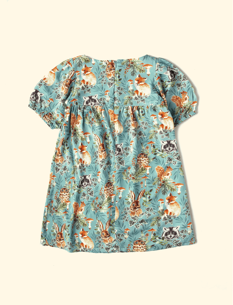 Vestido Infantil The Mini Forest confeccionado em tecido plano de viscose de madeira de reflorestamento (certificada) que, além de muito leve, maleável e fresquinha, não agride o meio ambiente. Tem modelagem bastante soltinha, manguinhas curtas bufantes e decote quadrado, além do fechamento super prático feito por zíper nas costas, que facilita na hora de vestir a criançada.