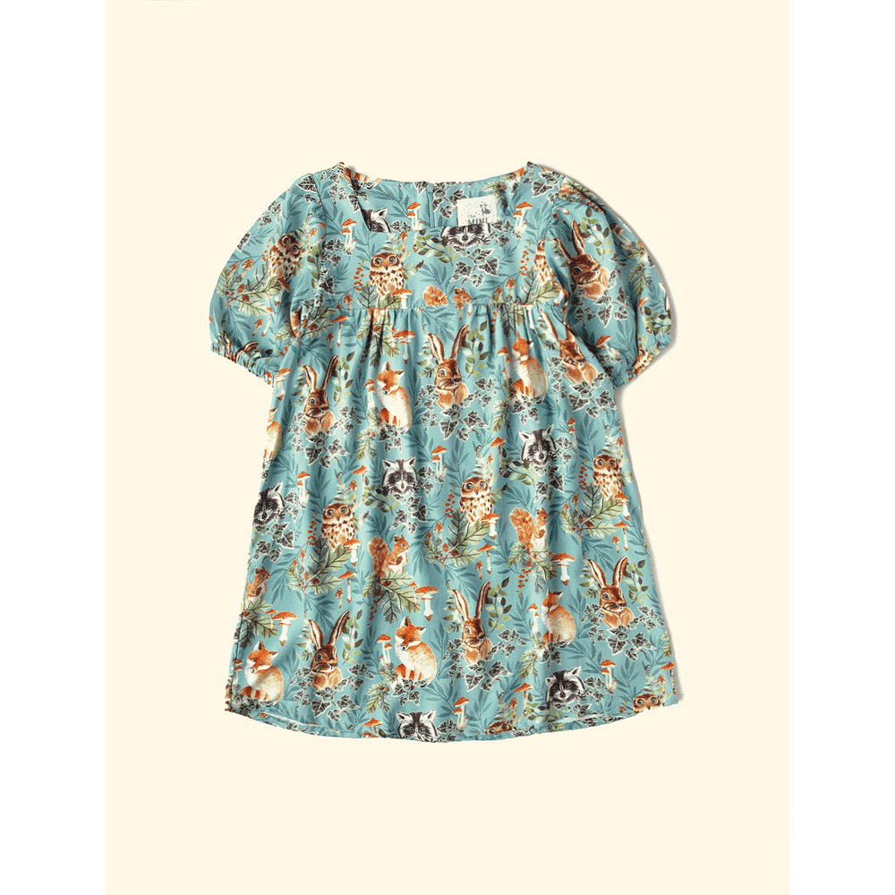 Vestido Infantil Manga Bufante Mini Floresta Azul