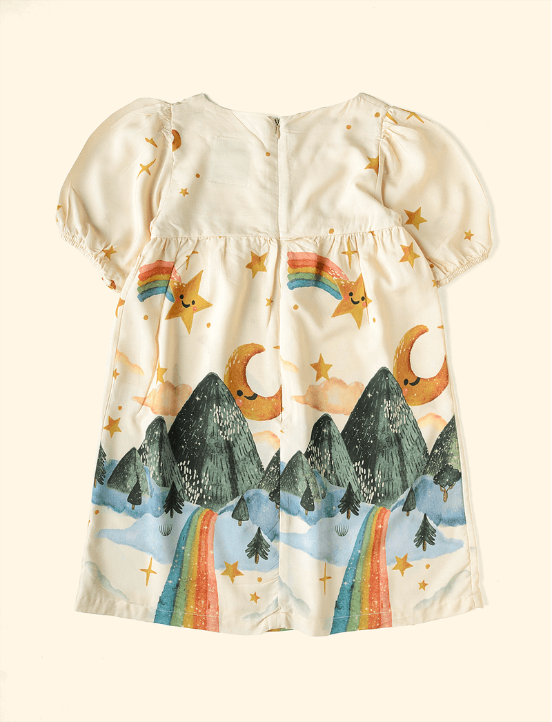 Vestido Infantil Manga Bufante Vale Encantado Baunilha