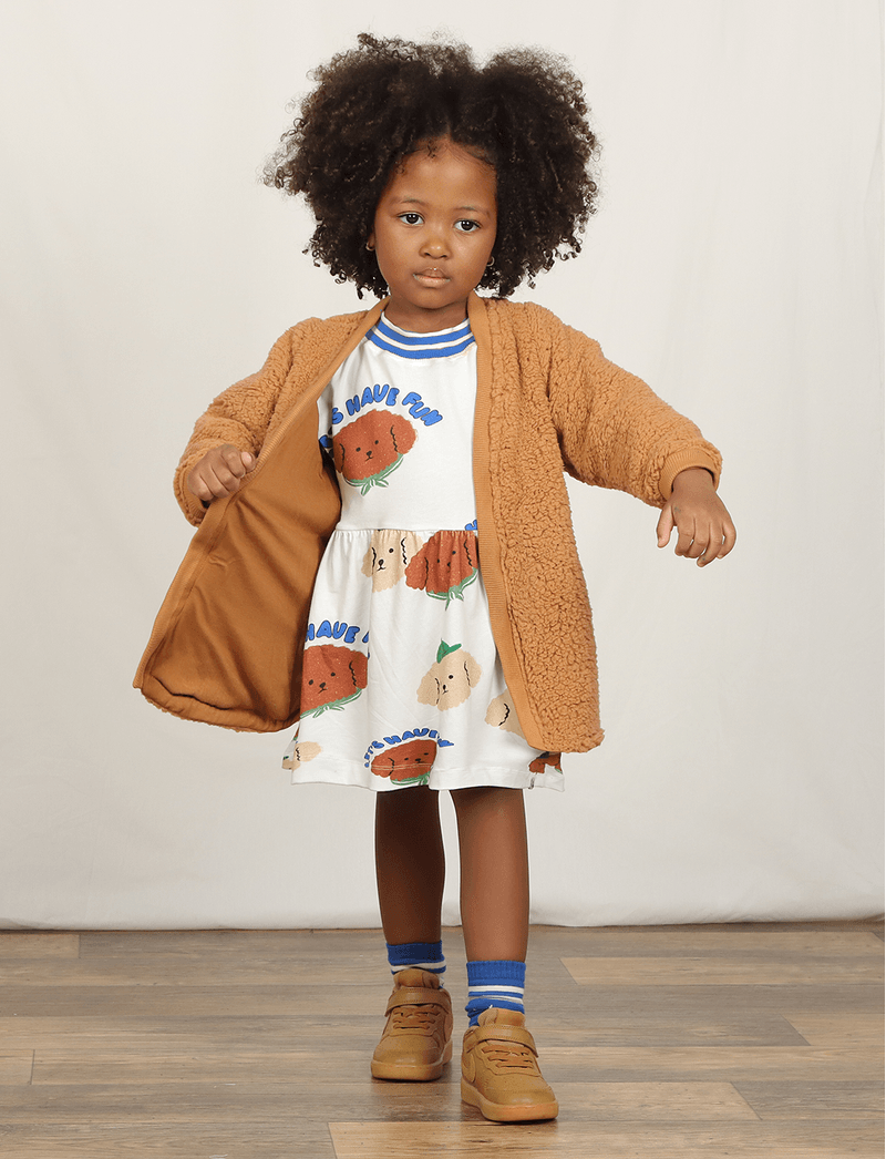 Vestido infantil The Mini Forest de manguinhas compridas e modelagem larguinha, confeccionado em malha mista de elastano e algodão, que tem boa elasticidade e é muito confortável, ideal para acompanhar as meninas durante todo o dia.