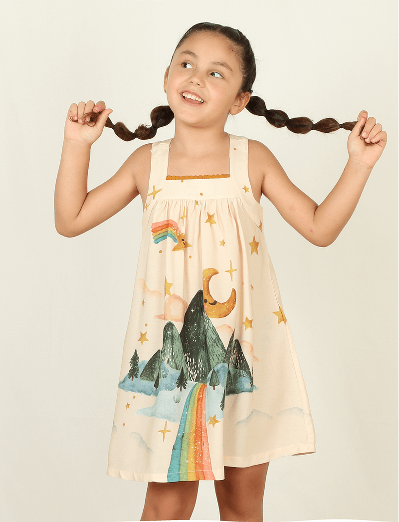 Vestido Infantil Trapézio Vale Encantado Baunilha