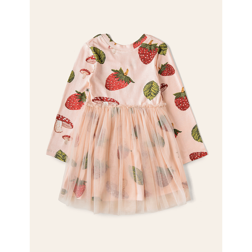 Vestido infantil The Mini Forest com as manguinhas longas e decote redondo. Essa pecinha é feita em malha de elastano e algodão, que é macia e tem boa elasticidade, que facilita para vestir a criançada e não atrapalha as brincadeiras. Esse modelinho tem aplicação de sainha de tule por cima da peça estampada, parecendo um tutu de bailarina, que além de ser puro charme é muito amada pelas crianças.
