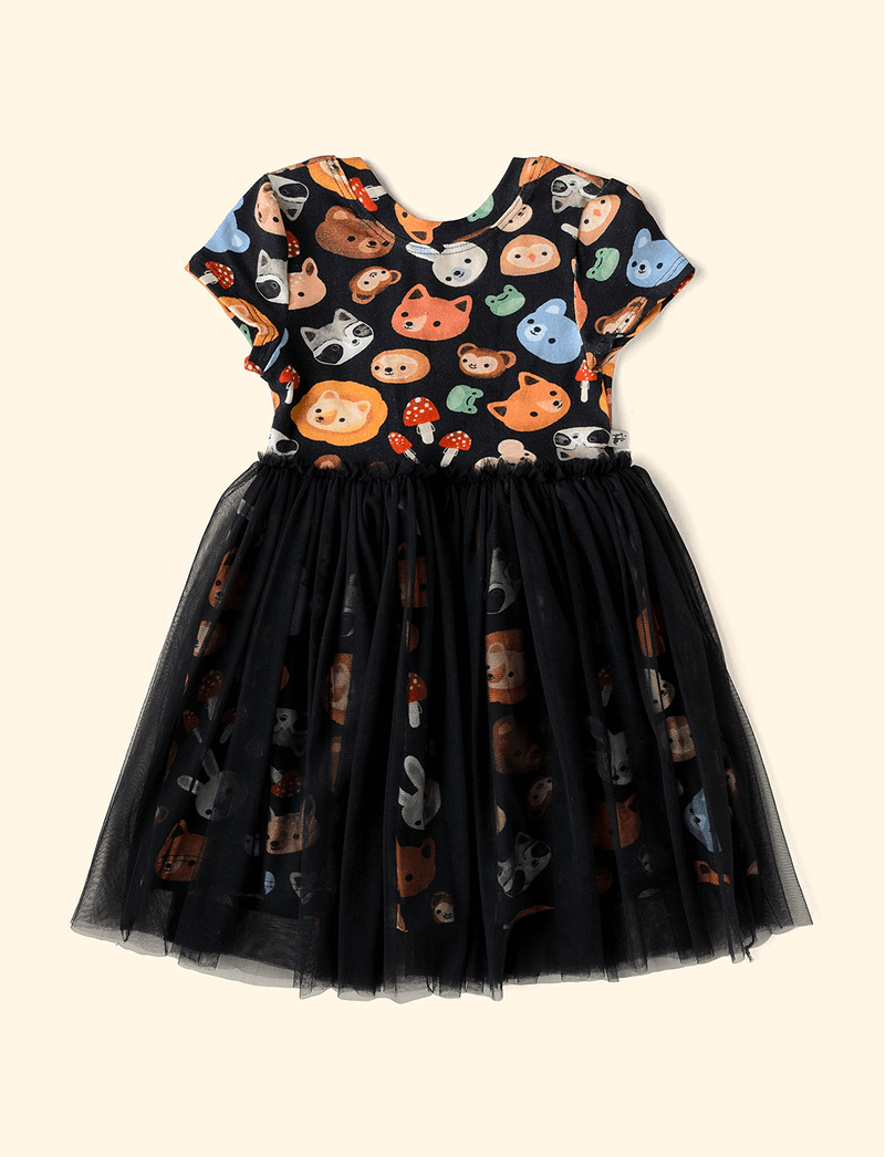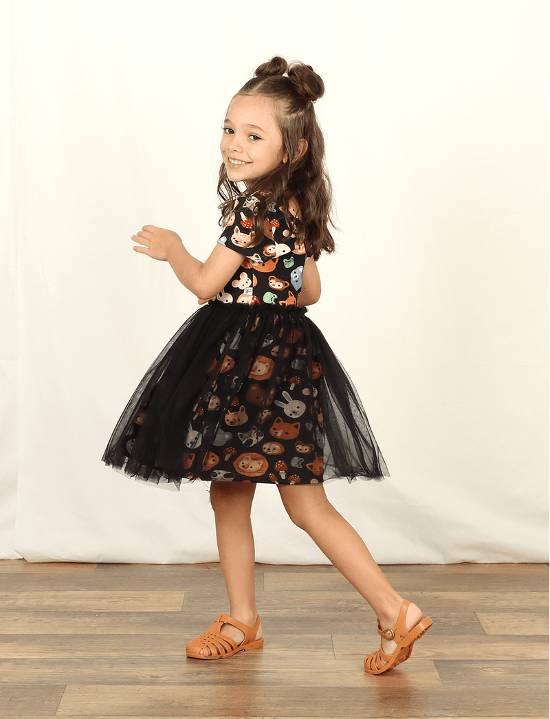 Vestido Infantil Tule Máscaras da Fauna Preto