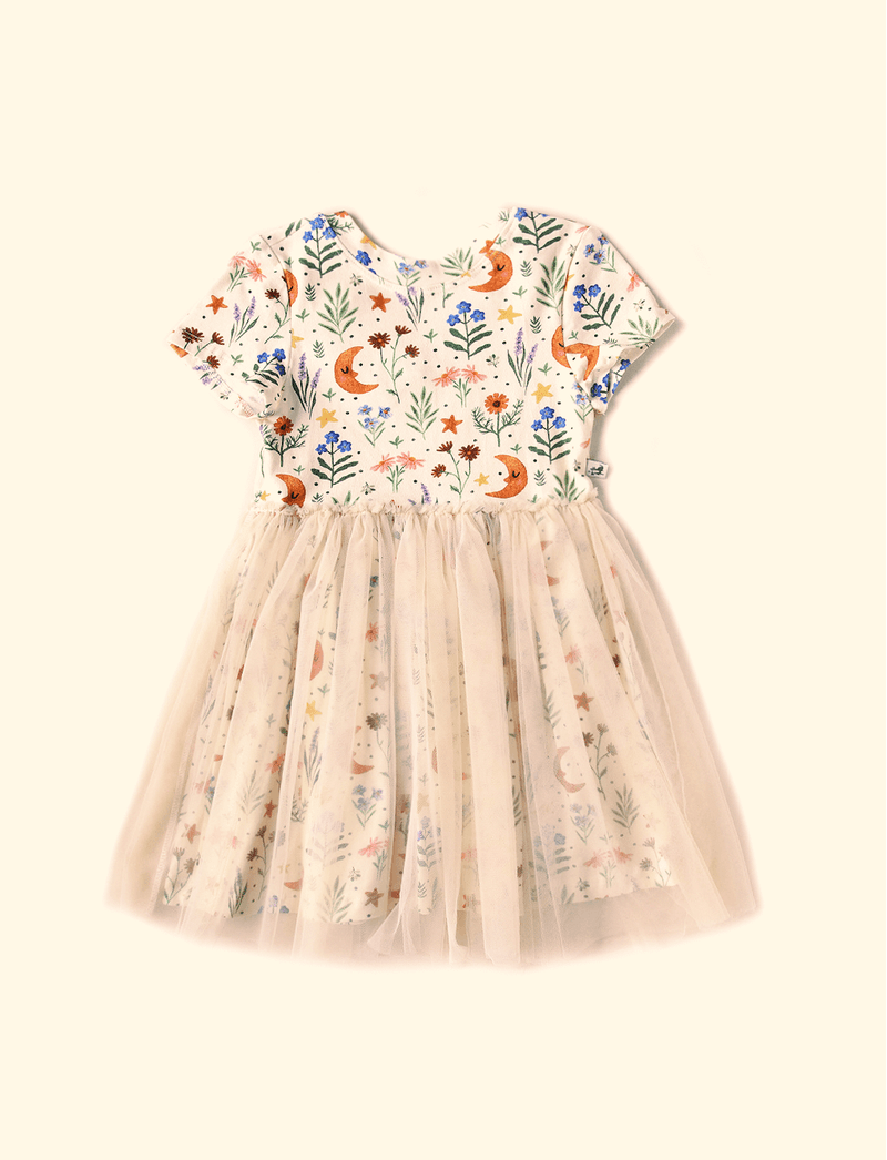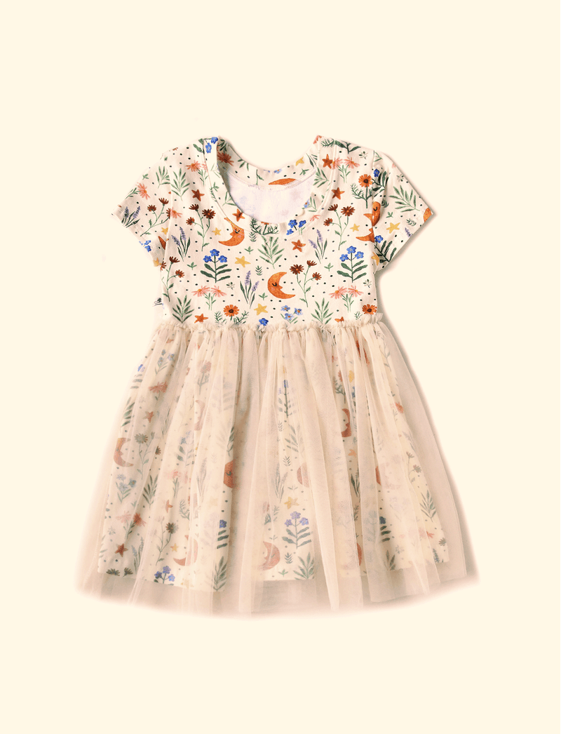 Vestido Infantil Tule Noite Florida Baunilha