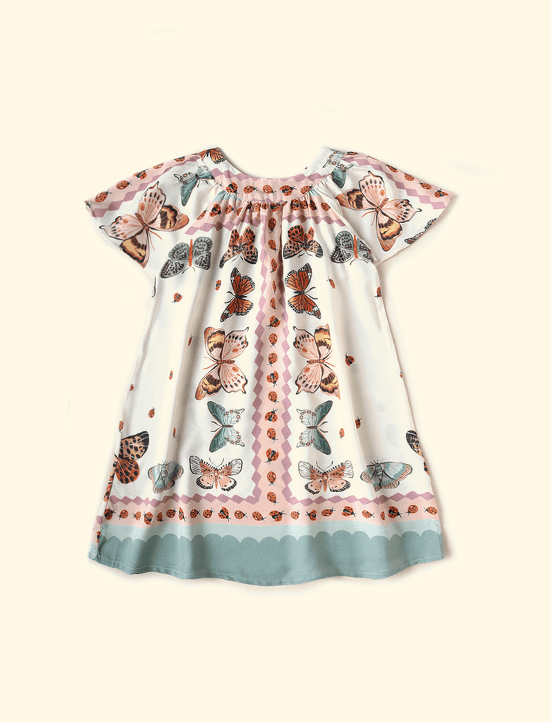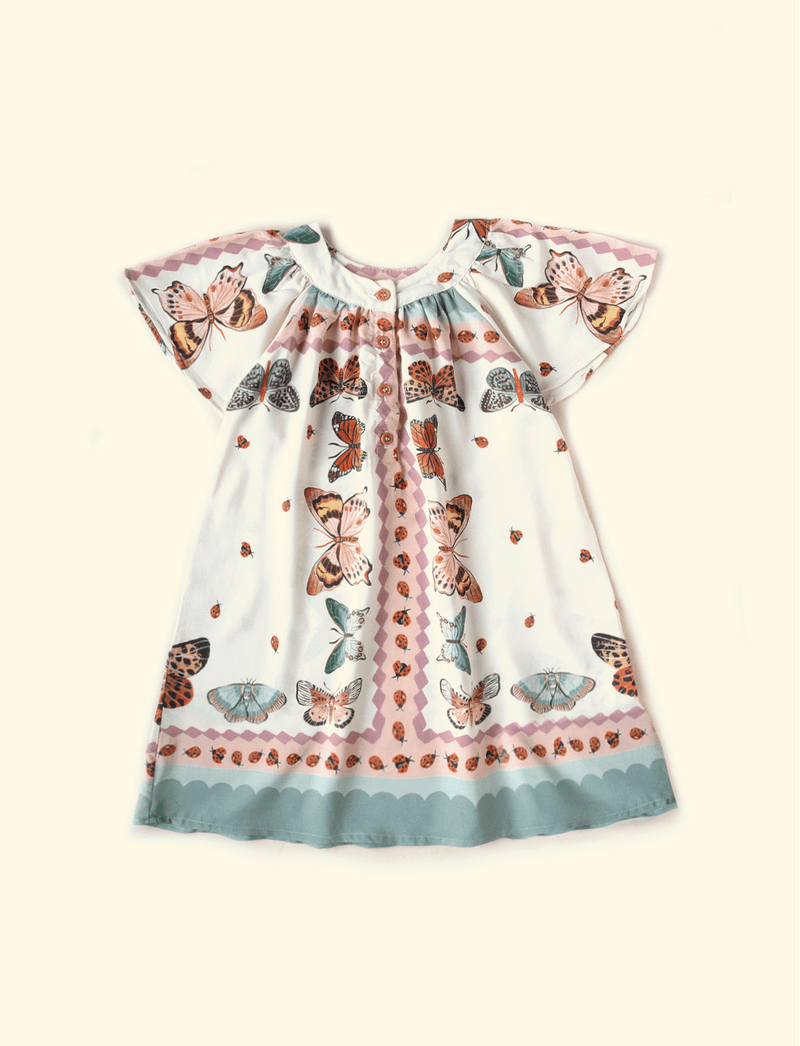 Vestido Infantil Soltinho Borboletas e Joaninhas Baunilha